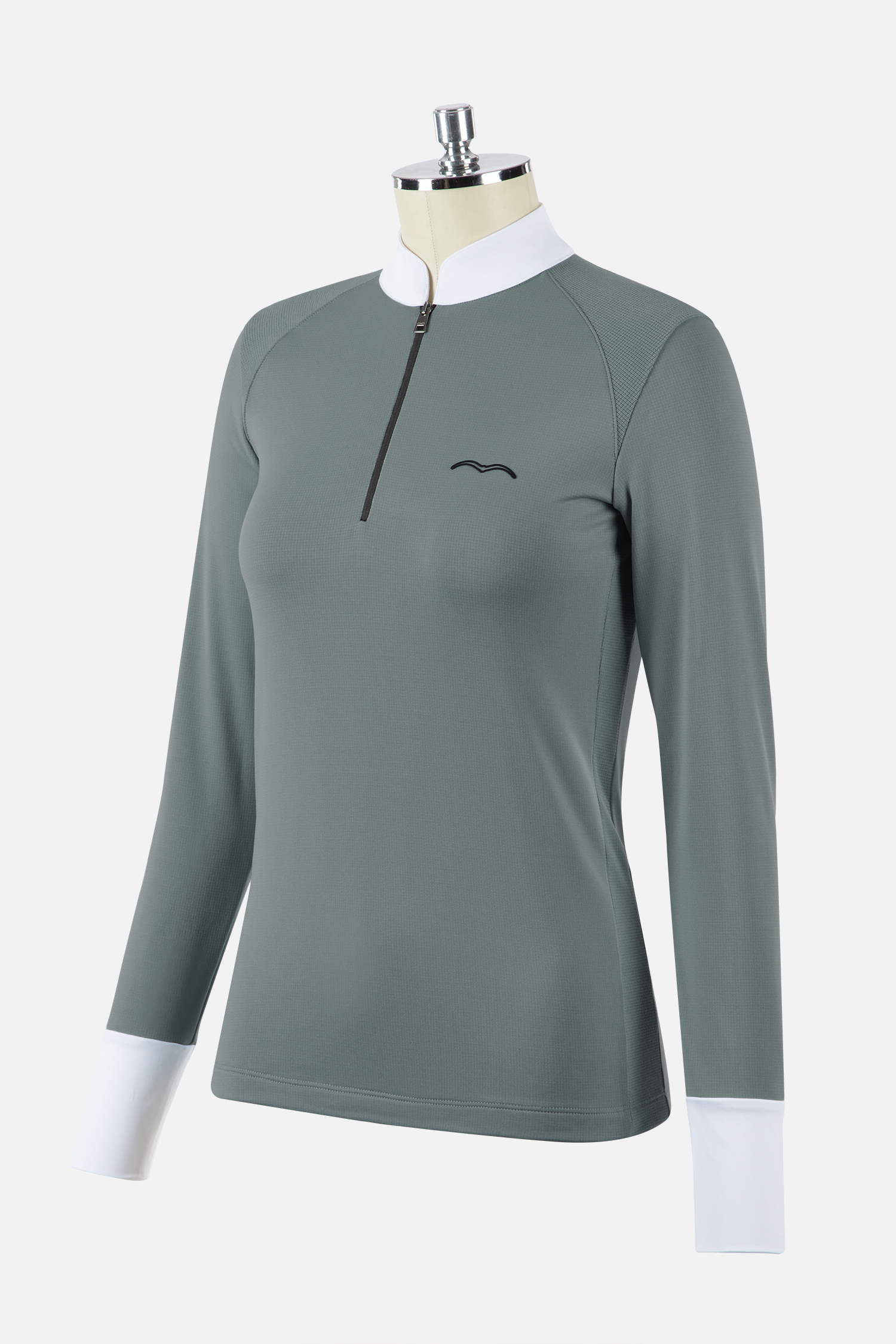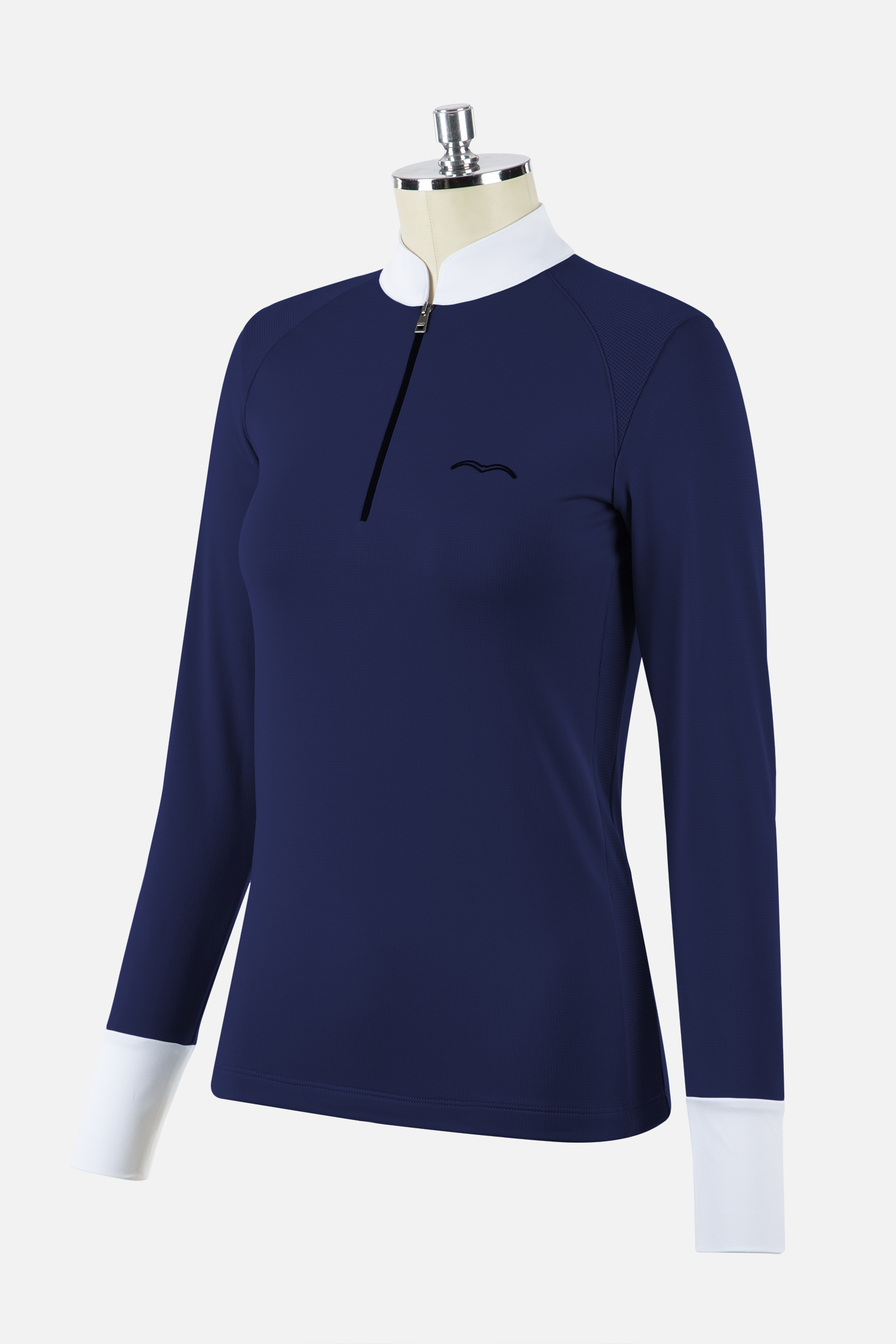 - Polo termic pentru femei cu jumătate de fermoar pentru competiție, cu mâneci lungi din material Tecnostretch Eyra. Căptușit interior cu lână. Inserții ton pe ton pe umeri și șolduri; manșete albe.