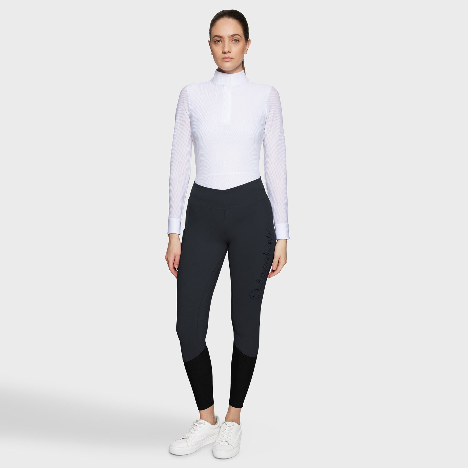 - Design elegant cu plasă fină pe gambe, blazon Swarovski® pe spate și logo Samshield pe coapsă