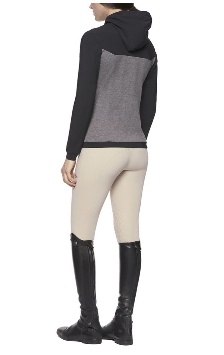 - Jachetă cu glugă din jersey în două nuanțe de Cavalleria Toscana este completarea perfectă pentru ținuta ta de concurs.