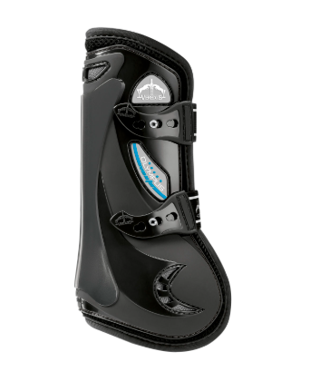 • Căldura eliberată de piciorul calului trece prin stratul de neopren microperforat și este distribuită în materialul canalizat din plasă 3D. Aerul proaspăt intră prin orificiile de admisie a aerului și direcționează căldura în sus, către grila de ieșire. Prin urmare, ventilația este atât orizontală, cât și verticală. Protecția tendoanelor frontale este garantată de o peliculă absorbantă de șocuri din EVA.