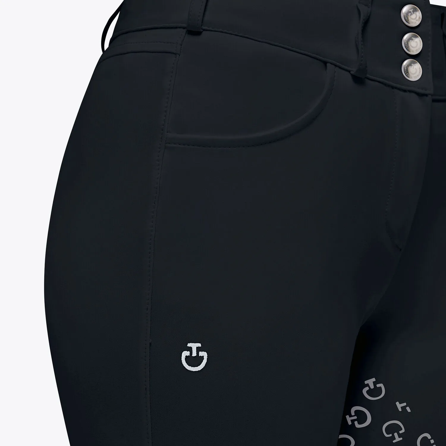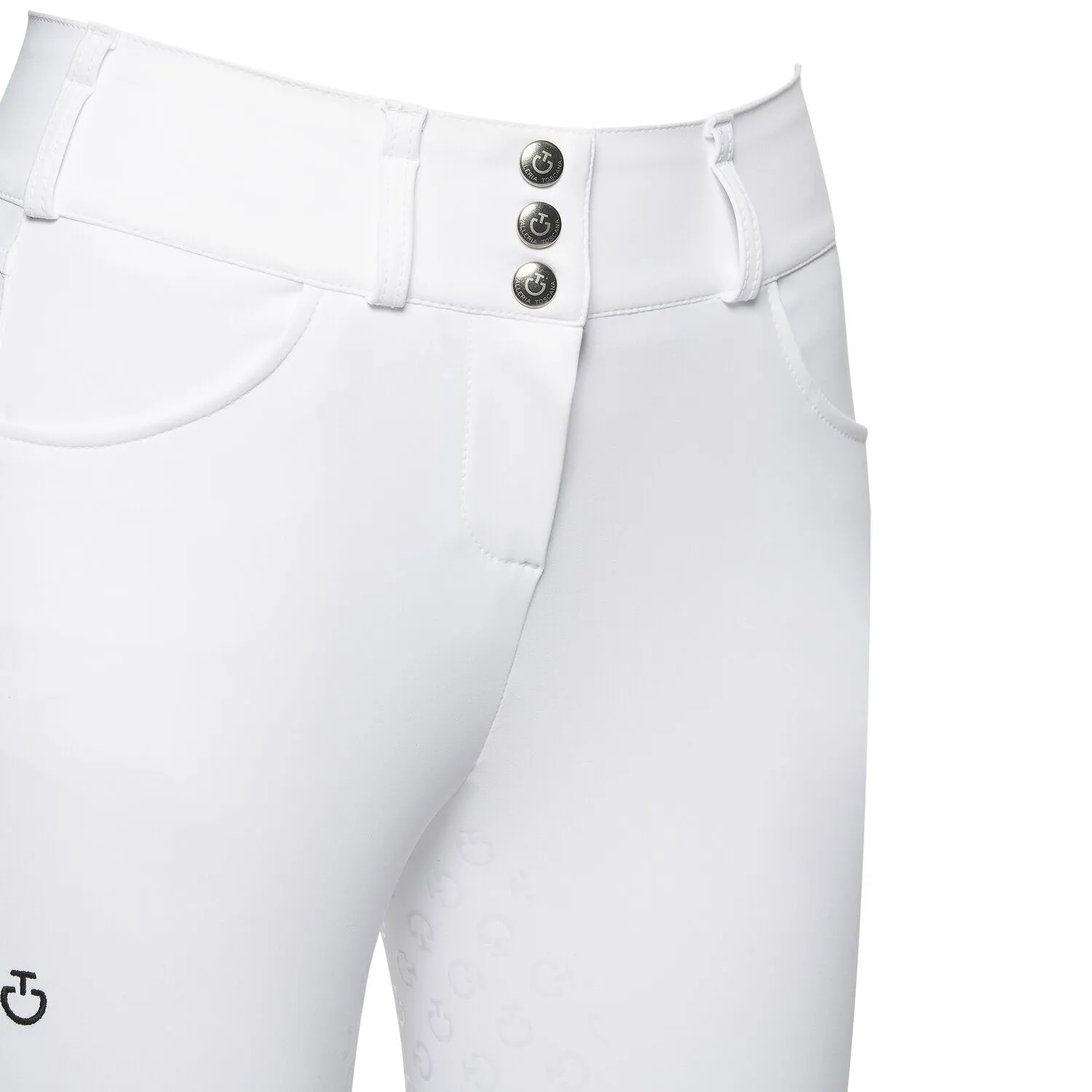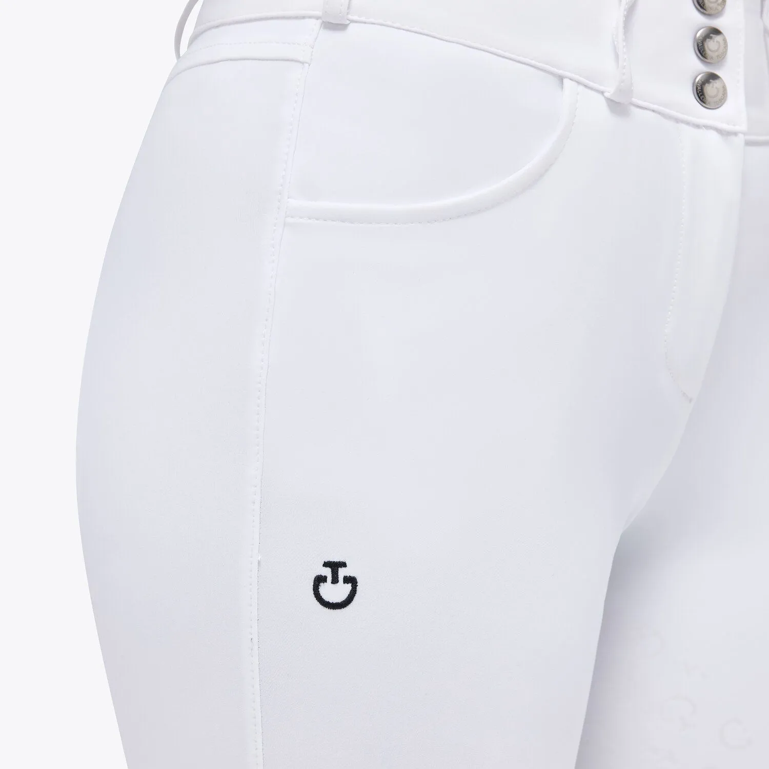 - Pantalonii Cavalleria Toscana cu aderență completă aderă perfect la șa, fără a-ți restricționa mișcările. Sunt confecționate din jerseu tehnic 4-way stretch, combinând eleganța și performanța. Oferă respirabilitate, proprietăți antibacteriene și protecție UV, ideală pentru activități sportive. Pantalonii au două buzunare frontale și fermoar în față cu nasture și sunt rafinați de un mic logo brodat pe coapsă. Materialul poate fi spalat la masina si se usuca rapid, ideal pentru utilizare frecventa.