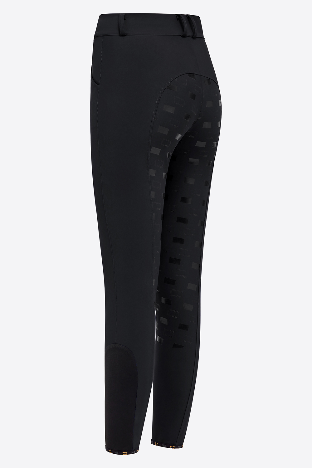 - Acești pantaloni de sărituri sunt confecționați din material tehnic bi-elastic și au o prindere completă ton pe ton pentru a asigura o potrivire perfectă pe șa. Caracteristica specială a acestui model este prinderea ascunsă în interiorul taliei, perfectă pentru o mai bună aderență la cămașă. Prezintă o închidere cu fermoar în față, întărită de un nasture dublu și bucle mari pentru a fi purtați confortabil cu curea. Șoseta din partea finală a pantalonilor înfășoară gamba sub cizmă și are o acțiune respirabilă. Finisajul cu logo-ul RG imprimat în contrast conferă hainei un aspect modern.