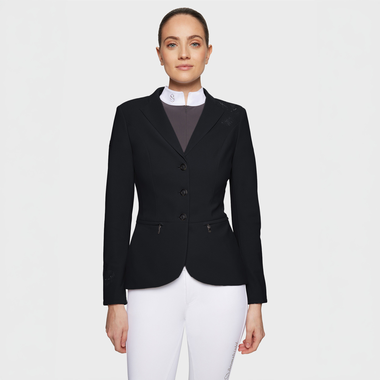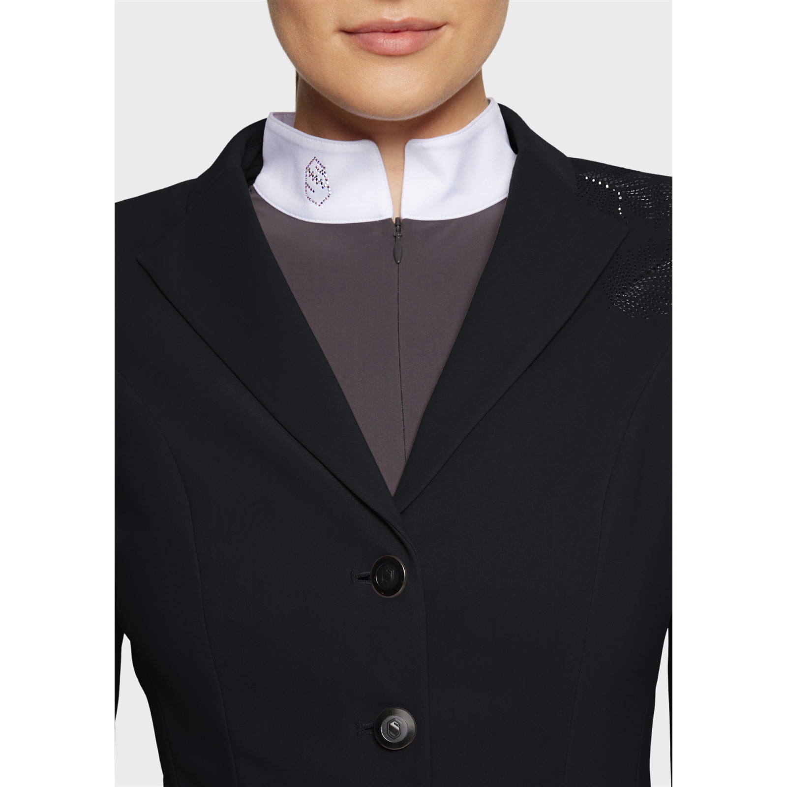 - Elegantă, tehnică și rafinată, jacheta de spectacol Samshield Victorine Crystal Ferna combină performanța și stilul cu o croială emblematică: mai scurtă în față și ușor alungită în spate, pentru o siluetă feminină și dinamică. Fabricată dintr-un material elastic și respirabil, asigură libertate de mișcare, confort și susținere perfectă pe tot parcursul spectacolului.