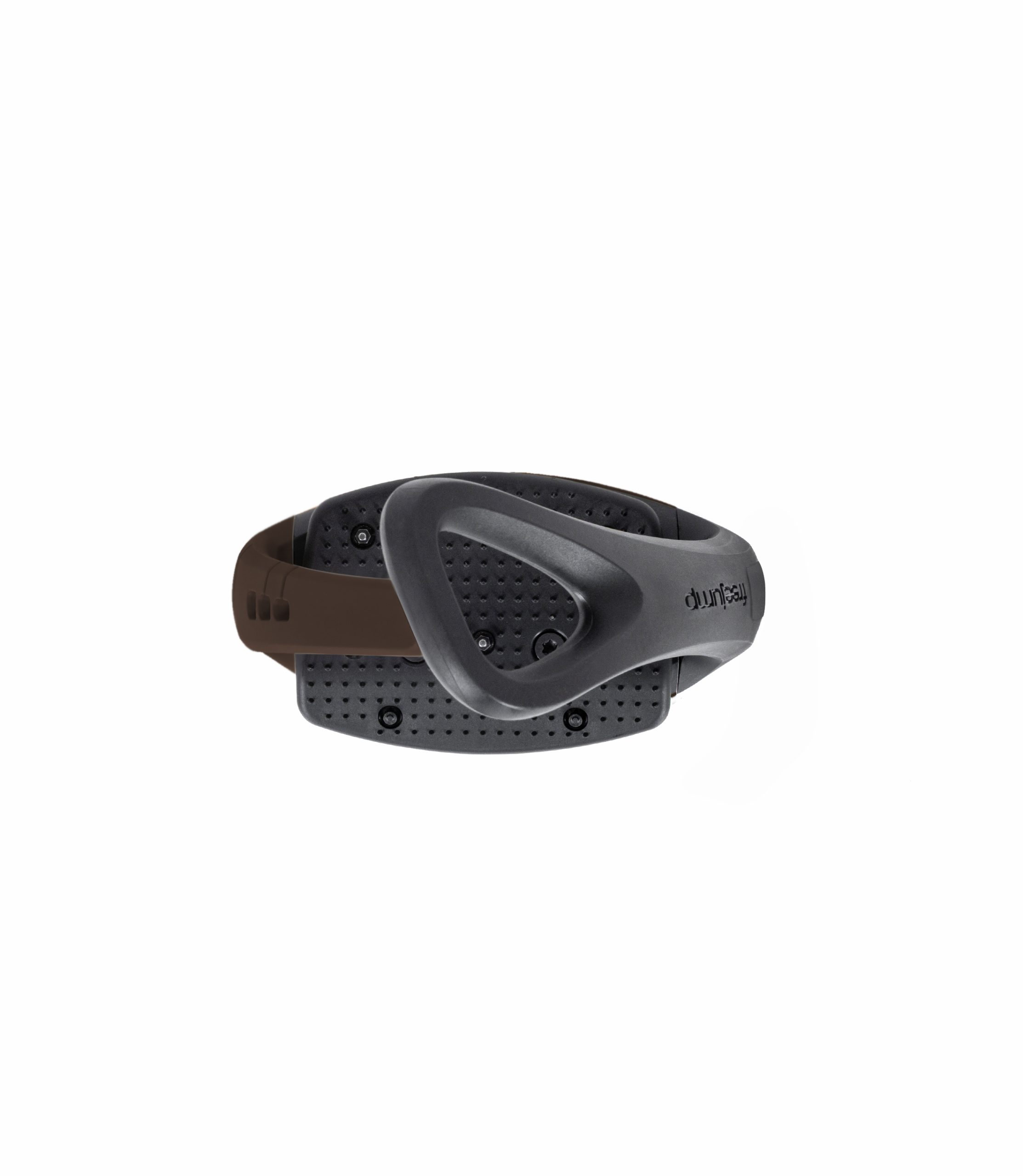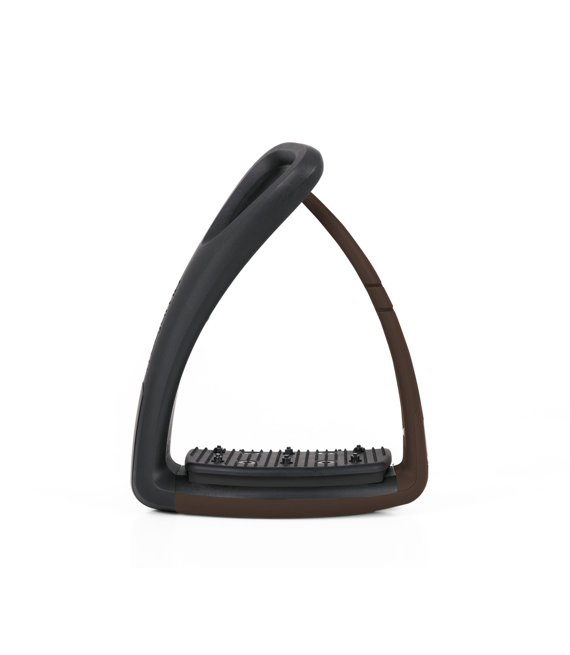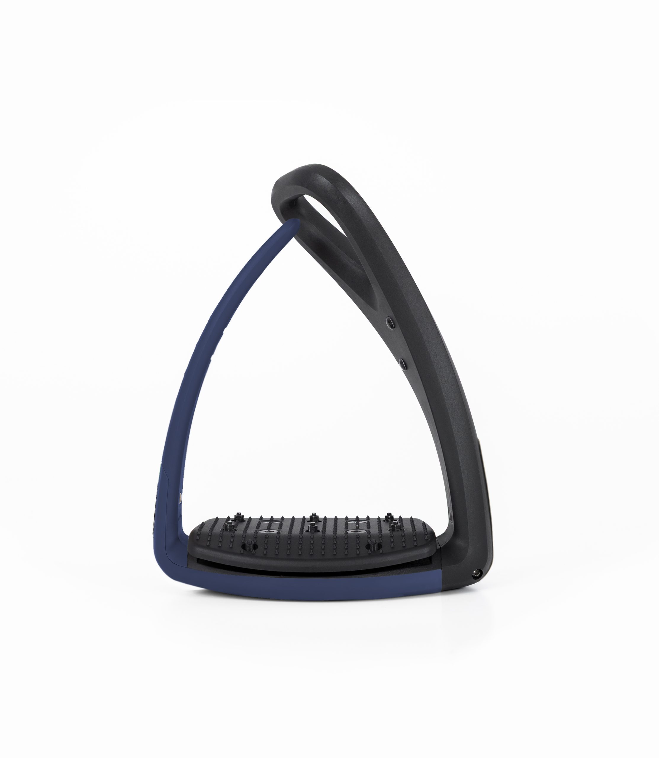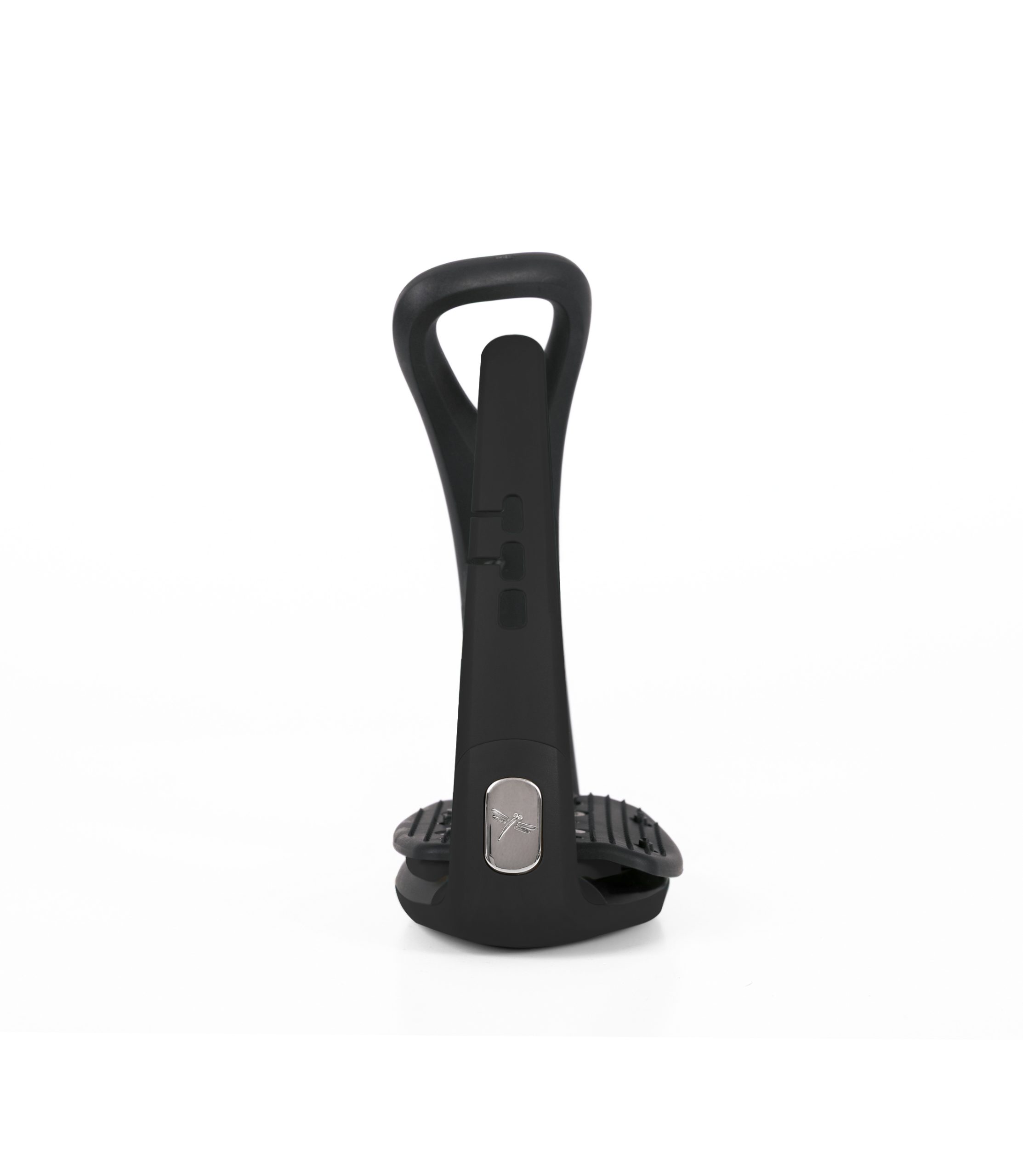 • Structura cu o singură ramură din oțel cu arc absoarbe până la 30% din forțele exercitate asupra etrierelor și este cuplată cu un elastomer de amortizare care acționează ca un adevărat sistem de absorbție a șocurilor, reducând solicitarea articulațiilor călărețului și a spatelui calului.