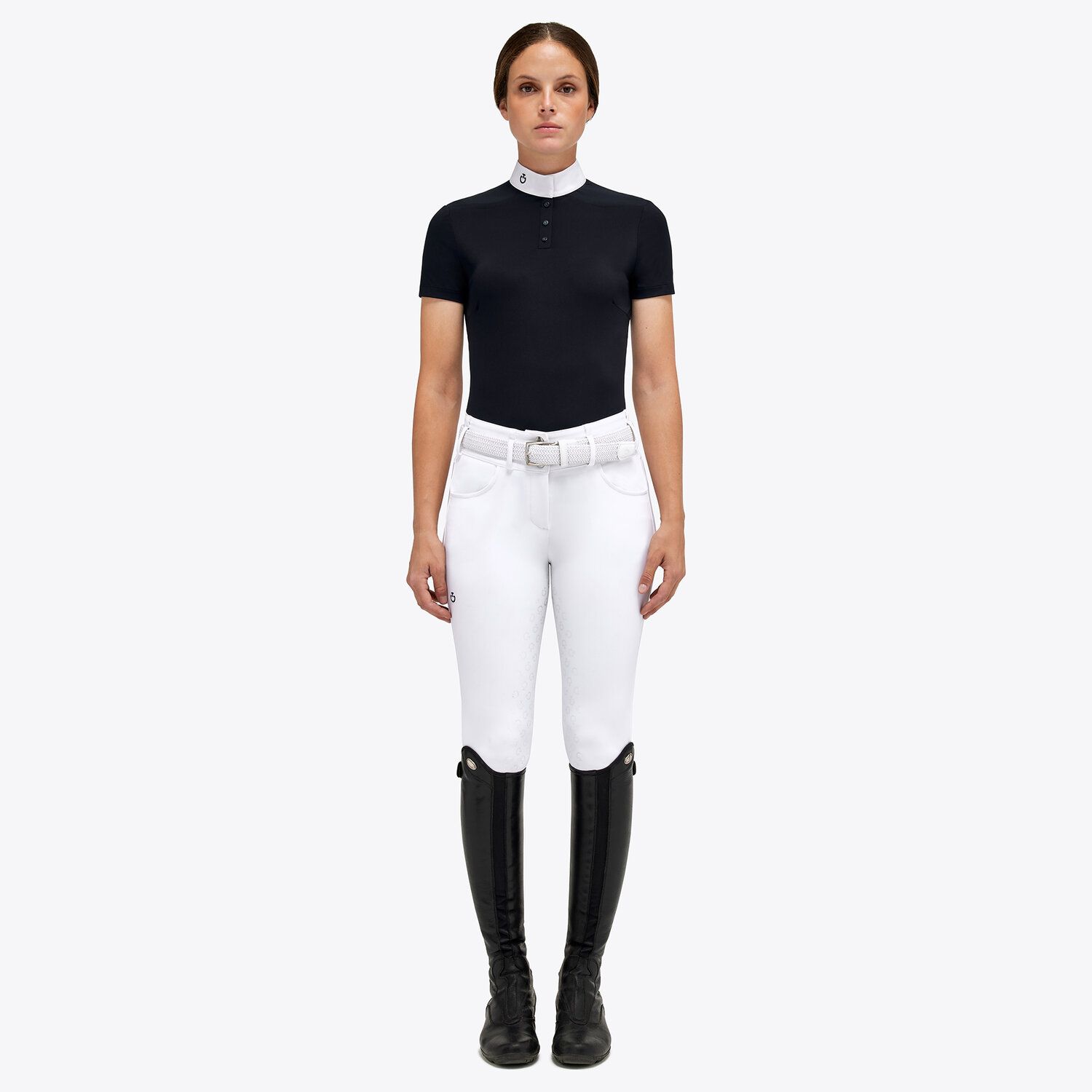 - Tricou polo pentru femei din tricou de competiție cu mâneci scurte, cu nasturi în față.