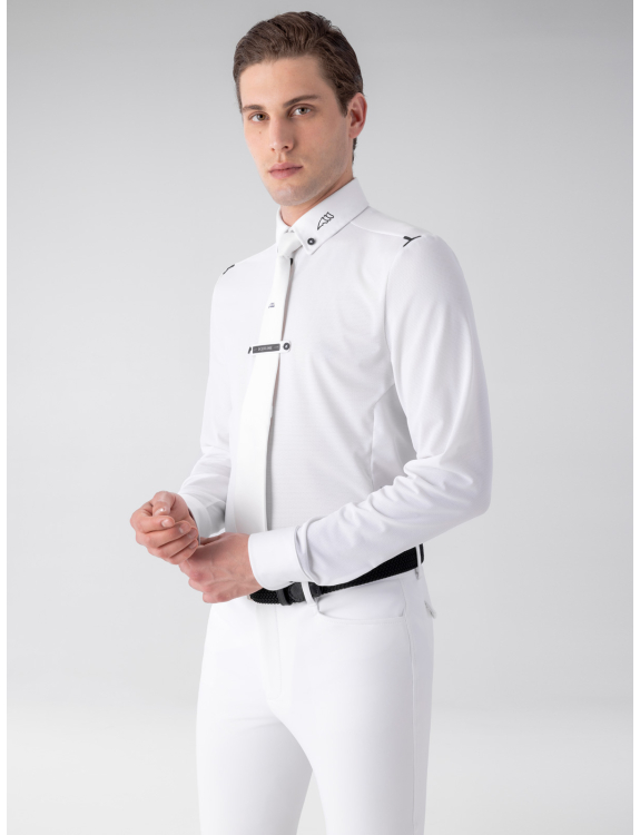 • Fabricat din material tehnic, ofera respirabilitate si confort exceptionale. Gulerul alb din poplin și logo-ul imprimat pe guler adaugă o notă de rafinament.