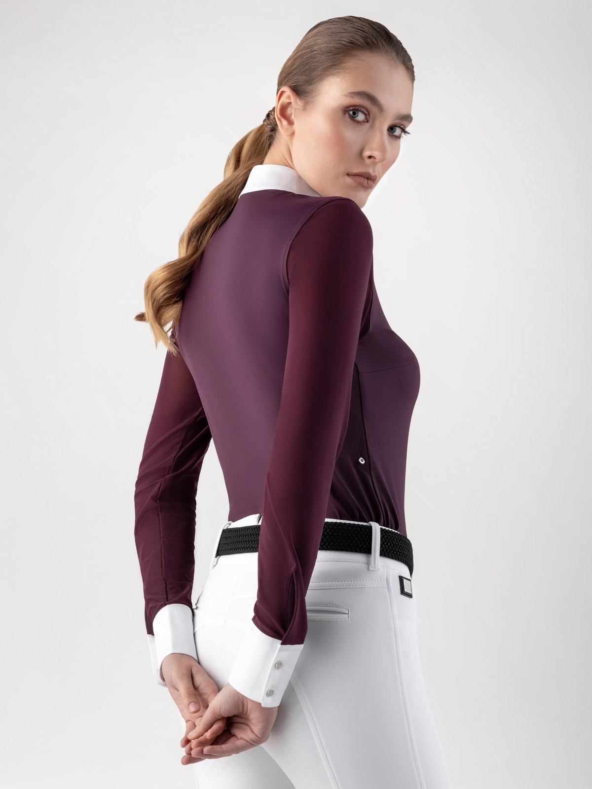- Fabricat dintr-un material elastic și respirabil, acest polo cu mânecă lungă asigură flexibilitate și confort, în timp ce mânecile din tul adaugă o notă de eleganță și respirabilitate ușoară. Detaliul plissé de pe feța frontală sporește designul sofisticat al tricoului, făcându-l să iasă în evidență în orice competiție.